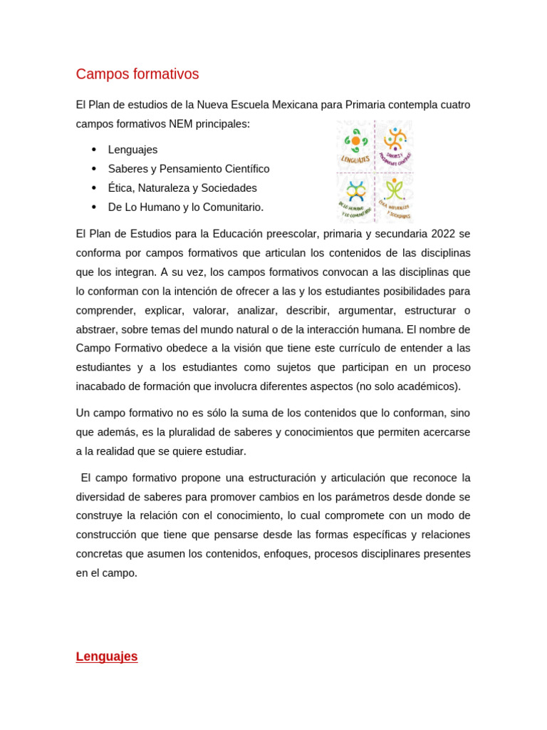 que los integran. A su vez, los campos formativos convocan a las disciplinas que