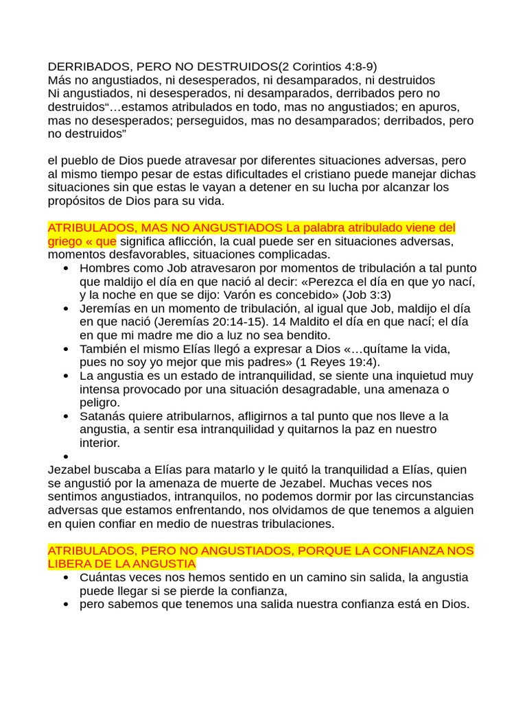 DERRIBADOS, PERO NO DESTRUIDOS(2 Corintios 4:8-9)