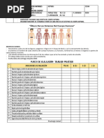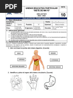 El documento es una evaluación de ciencias naturales que solicita completar información sobre diferentes sistemas del cuerpo humano. Se mencionan cinco sistemas: circulatorio, esquelético, respiratorio, urinario y digestivo, y se requiere explicar sus partes y funciones. La evaluación está fechada en 2019.