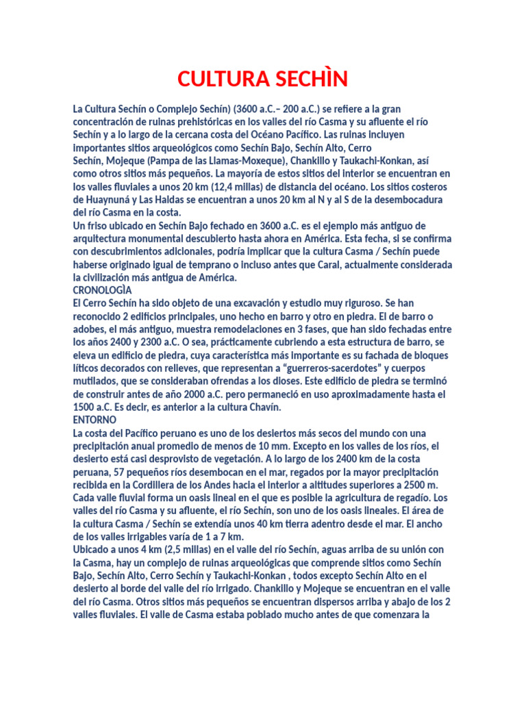 La Cultura Sechín o Complejo Sechín) (3600 a.C.– 200 a.C.) se refiere a la gran
