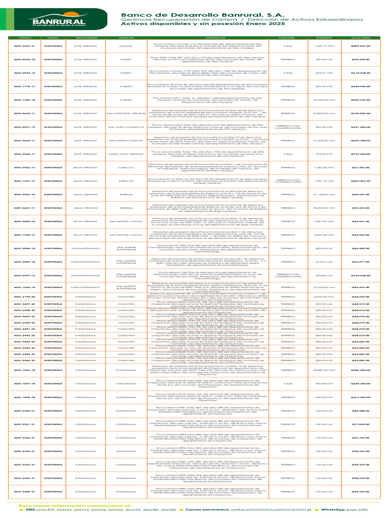 AEXI-2595-23 SIN POSESIÓN ZACAPA GUALÁN ubicado en Aldea Tabancas del municipio de Gualán del departamento 218,355.62 mts² Q1,347,246.00