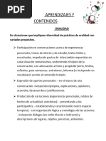 Listado de aprendizajes trabajados por espacio curricular