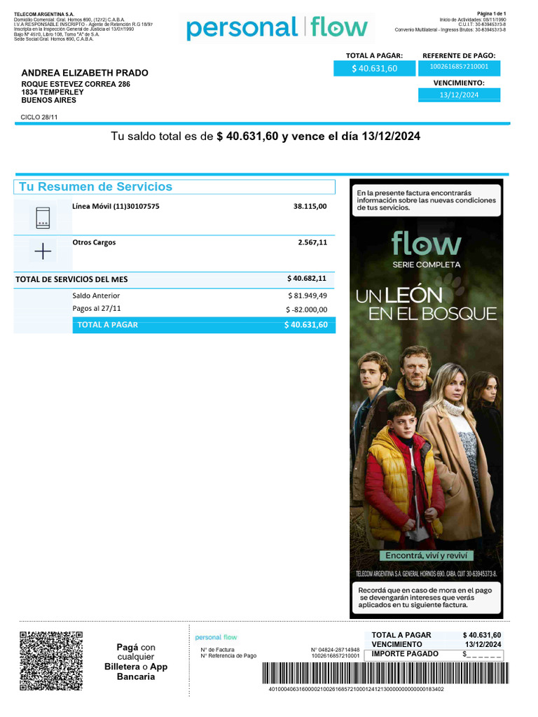 ANDREA ELIZABETH PRADO Factura N°: 04824-28714948