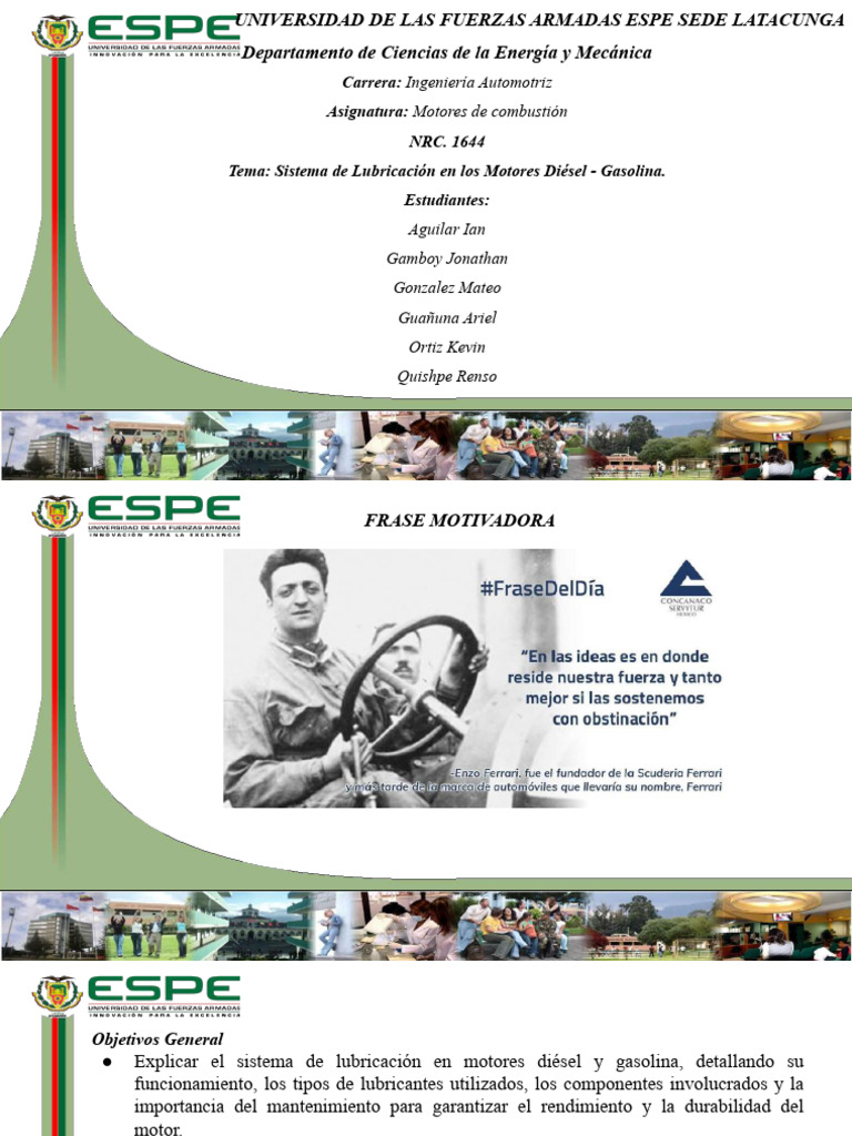 Tema: Sistema de Lubricación en los Motores Diésel - Gasolina.