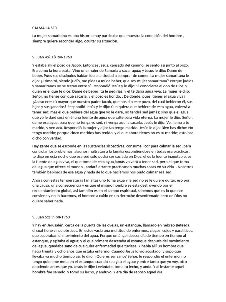 La mujer samaritana es una historia muy particular que muestra la condición del hombre ,