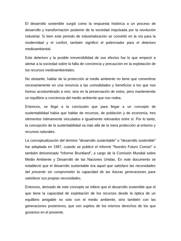 Medio Ambiente y Desarrollo de las Naciones Unidas. En este documento se