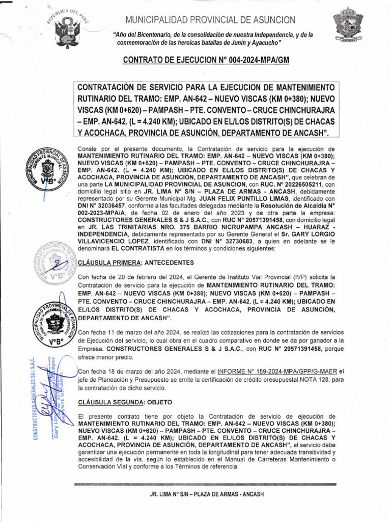 EULOS D¡STRTTO(S) DE CHAGAS Y ACOCHACA, PROVINCTA DE ASUNCTÓN,