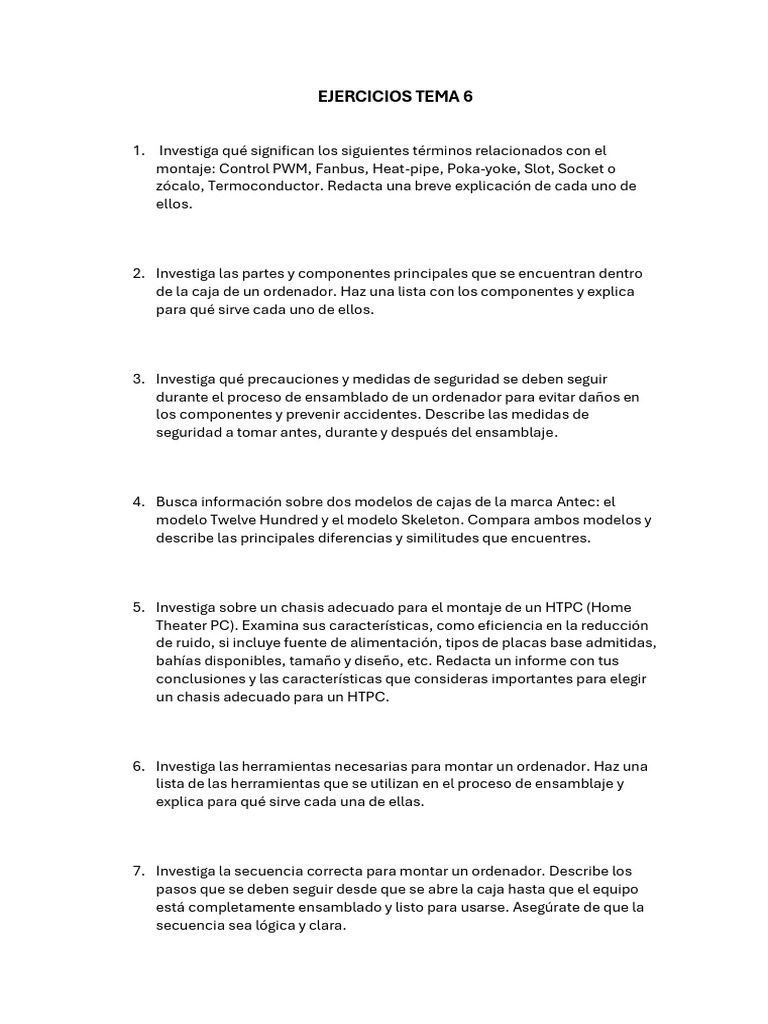 7. Investiga la secuencia correcta para montar un ordenador. Describe los