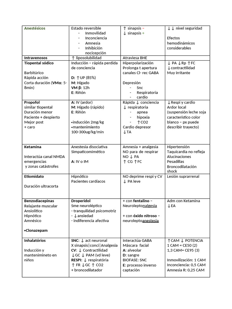 Anestésicos Estado reversible ↑ sinapsis – ↓↓ nivel seguridad