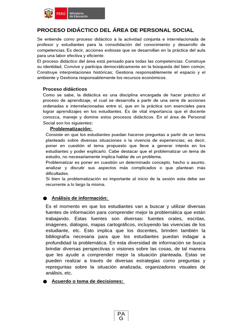 PROCESO DIDÁCTICO DEL ÁREA DE PERSONAL SOCIAL