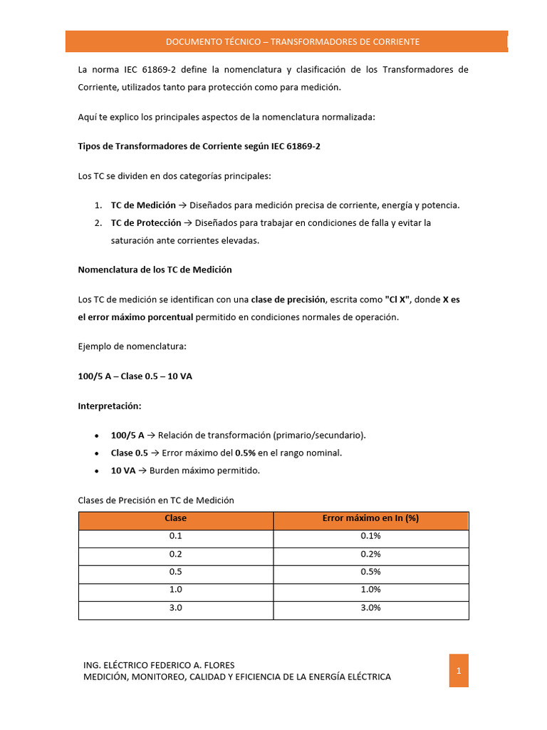 DOCUMENTO TÉCNICO – TRANSFORMADORES DE CORRIENTE