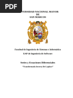 4.2. Mtodo de las series. Si f(s) tiene un desarrollo en serie de potencias de los recprocos de s dado por : a0 a1 a2 a3 f ( s) ... s s 2 s3 s 4 Entonces, dentro de algunas condiciones podemos invertir trmino a trmino para llegar a: a2t 2 a3t 3 F (t ) a0 a1t ... 2! 3!