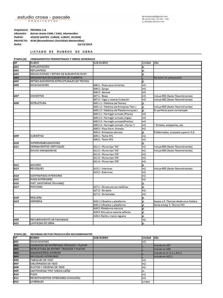 Nº RUBRO SUB-RUBRO Unidad Obs