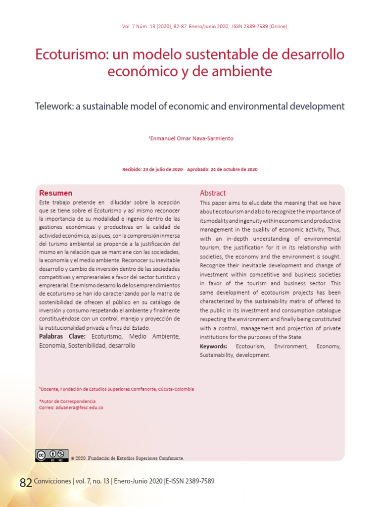 Economía, Sostenibilidad, desarrollo Keywords: Ecotourism, Environment, Economy,
