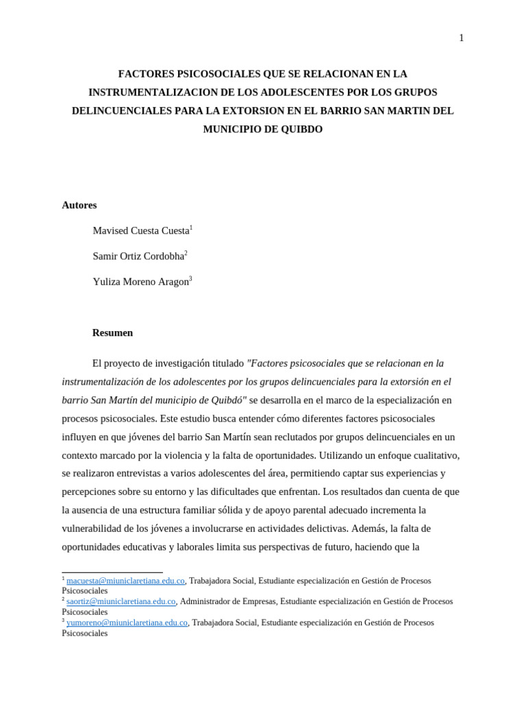 Palabras clave: Instrumentalización, adolescentes, grupos delincuenciales, extorsión