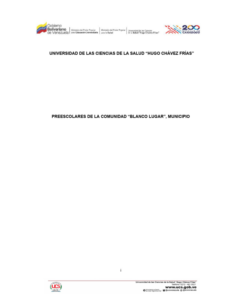PREESCOLARES DE LA COMUNIDAD “BLANCO LUGAR”, MUNICIPIO