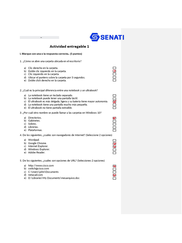 I. Marque con una x la respuesta correcta. (5 puntos)