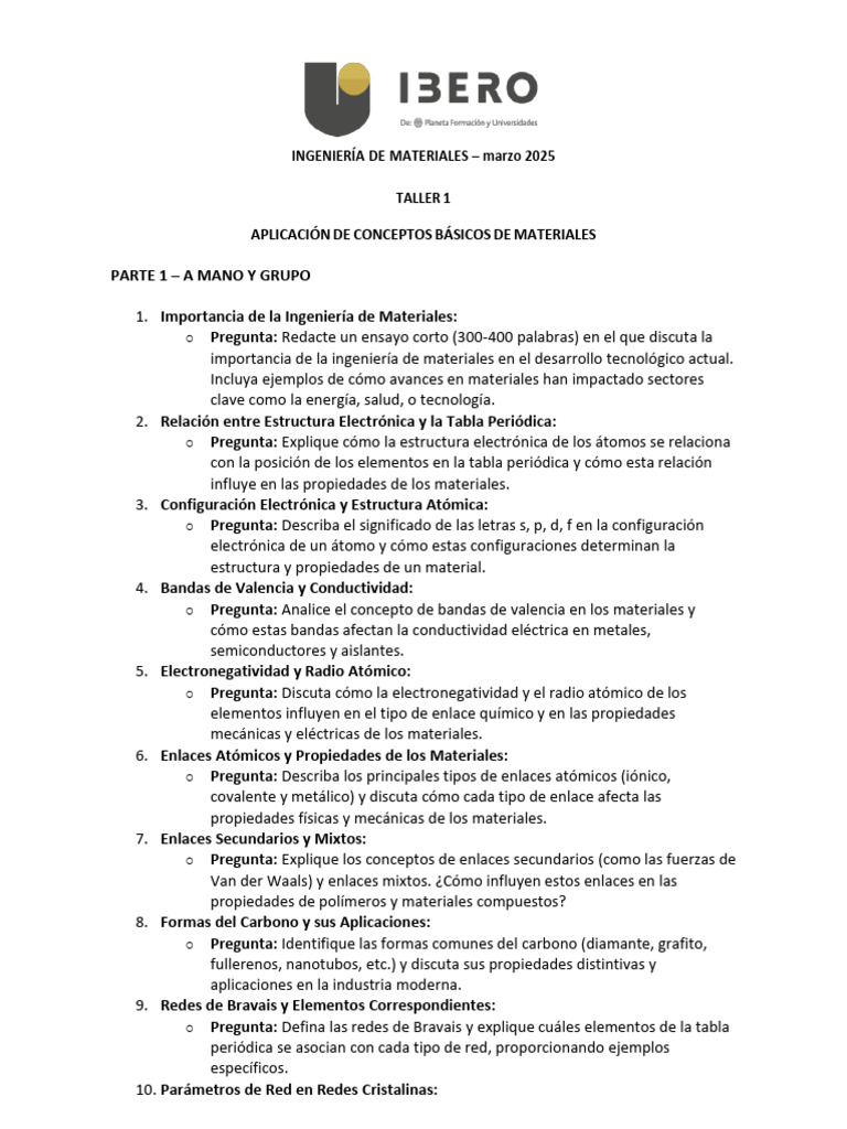 ingeniería de materiales. Se valorará especialmente la originalidad en la interpretación y