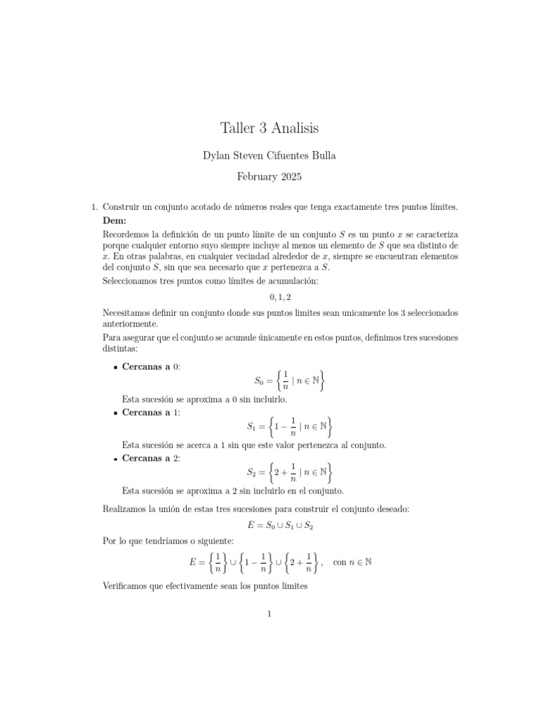 1. Construir un conjunto acotado de números reales que tenga exactamente tres puntos lı́mites.