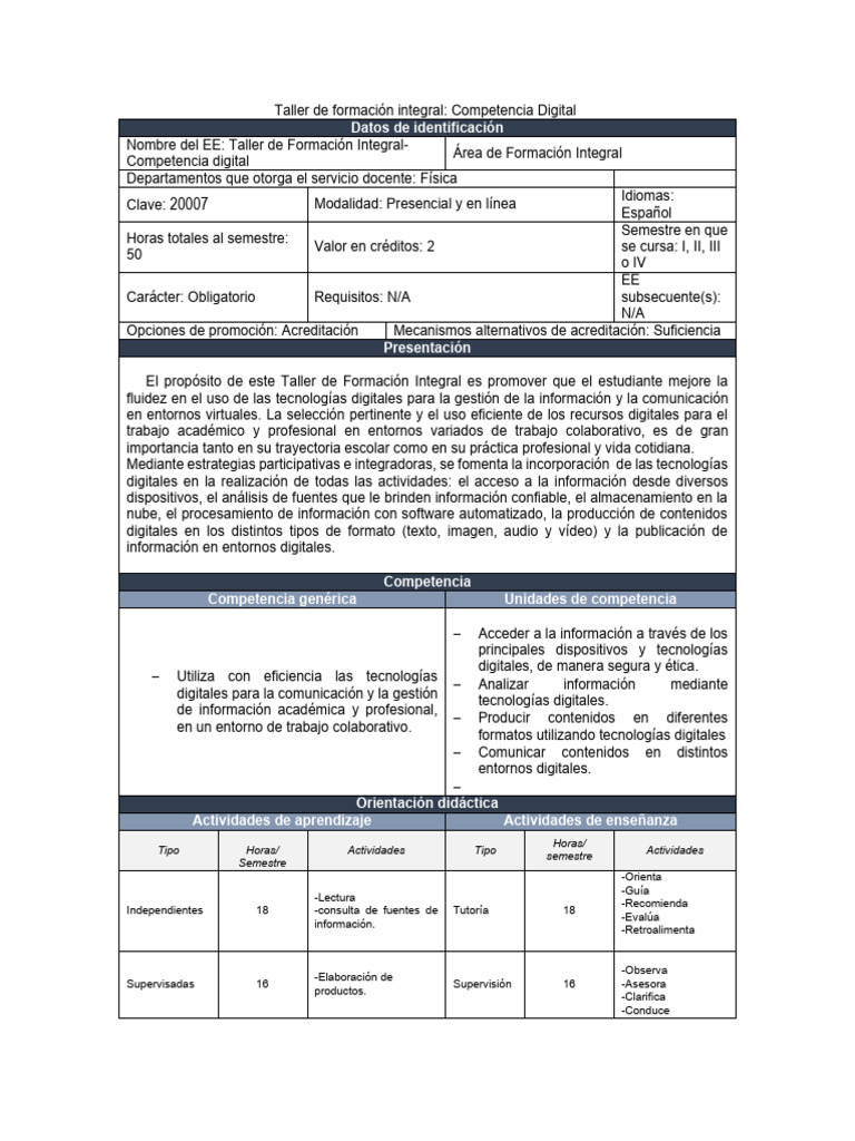 El propósito de este Taller de Formación Integral es promover que el estudiante mejore la