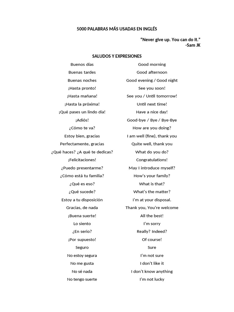 5000 Palabras Comunes en Inglés