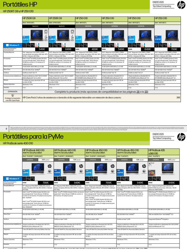 *PVP’s recomendados de promo sin IVA ni Compensación por Copia Privada. Precios y Promociones vigentes hasta finales de Enero de 2025. Promoción no acumulable a otras promociones o precios especiales. (1) Cuota mensual IVA no incluido. El precio indicado está basado en un contrato de arrendamiento a 36 meses, sujeto a aprobación de crédito por parte del arrendador, con un importe mínimo de transacción de 4.500€. Se puede incluir software