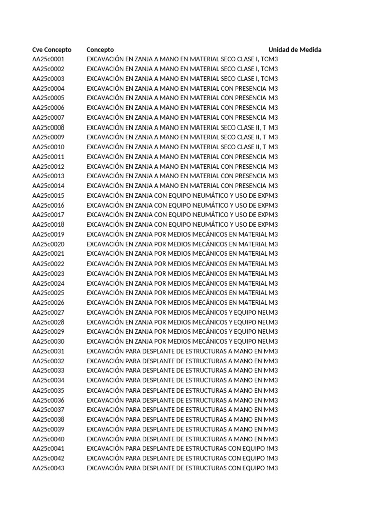 AA25c0044 EXCAVACIÓN PARA DESPLANTE DE ESTRUCTURAS CON EQUIPO NE M3