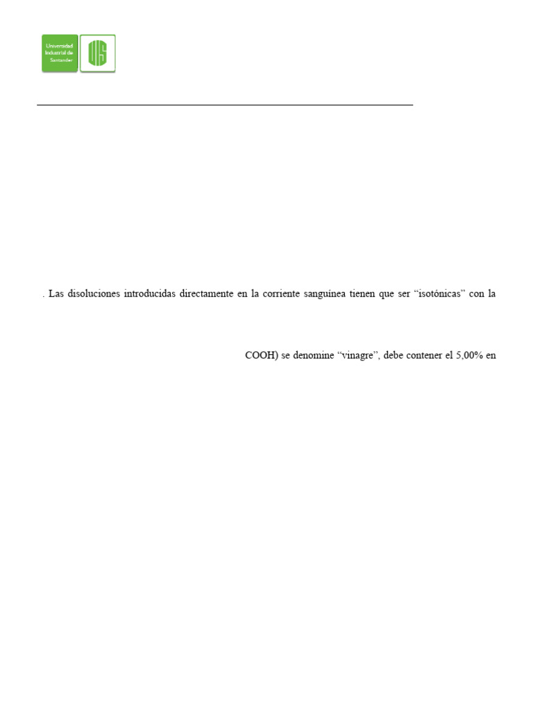 4. Para que una disolución de ácido acético (CH3COOH) se denomine “vinagre”, debe contener el 5,00% en