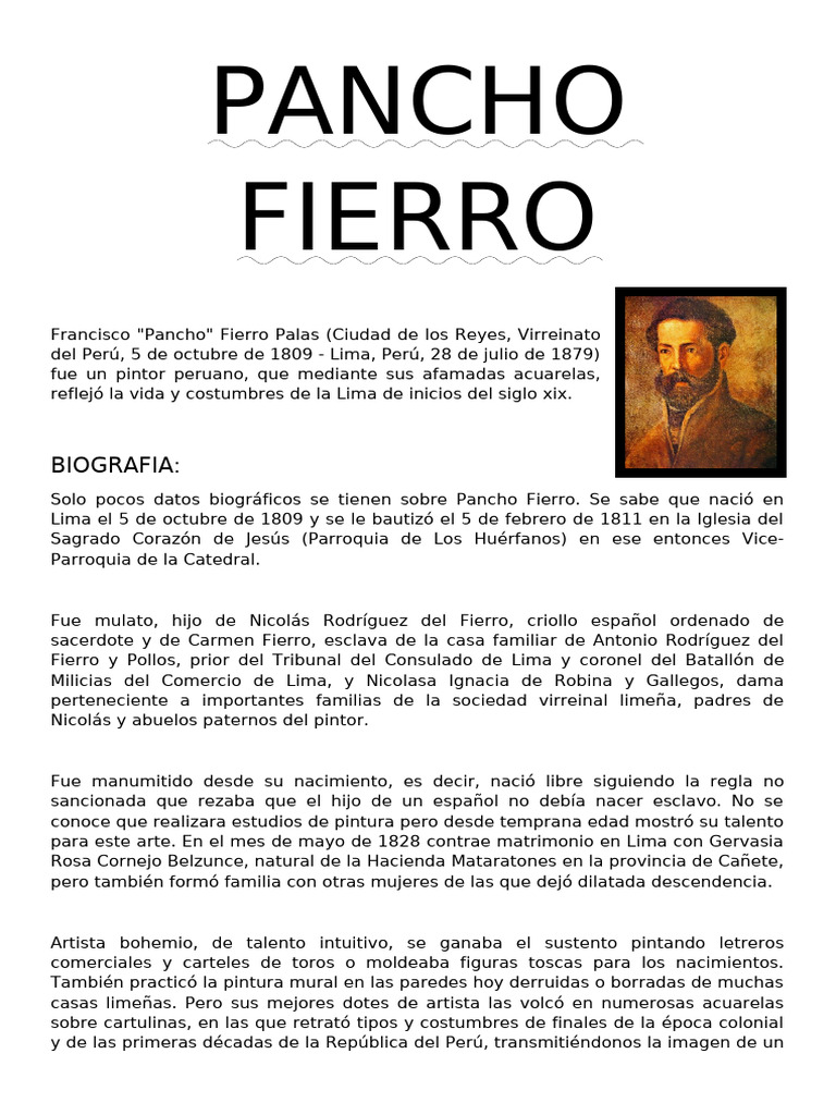 Solo pocos datos biográficos se tienen sobre Pancho Fierro. Se sabe que nació en