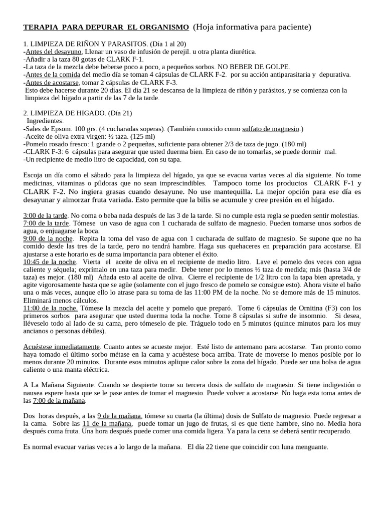 TERAPIA PARA DEPURAR EL ORGANISMO (Hoja informativa para paciente)