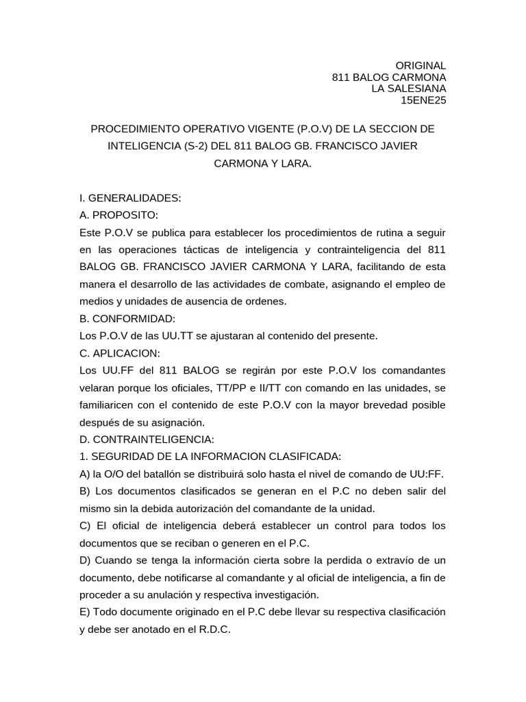 Este P.O.V se publica para establecer los procedimientos de rutina a seguir