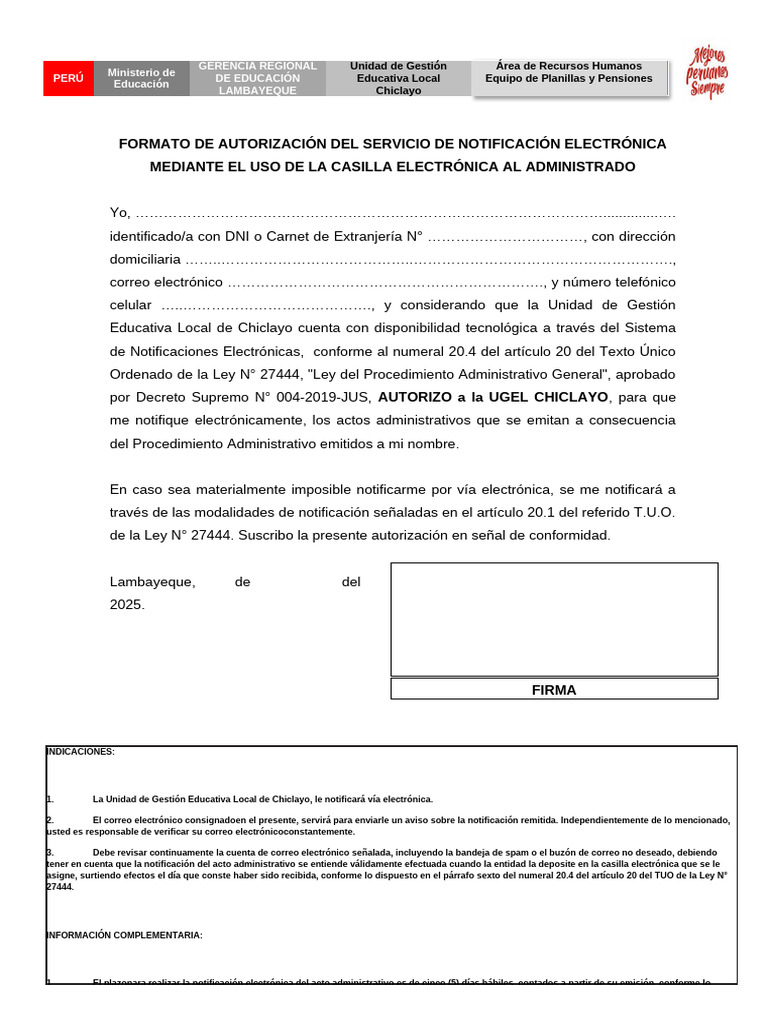 1. La Unidad de Gestión Educativa Local de Chiclayo, le notificará vía electrónica.