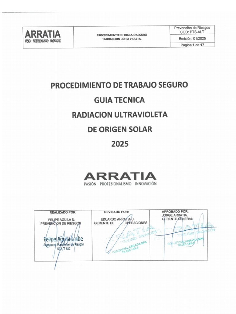 protección de la radiación UV, establecidas en el Reglamento Interno de Orden, Higiene y