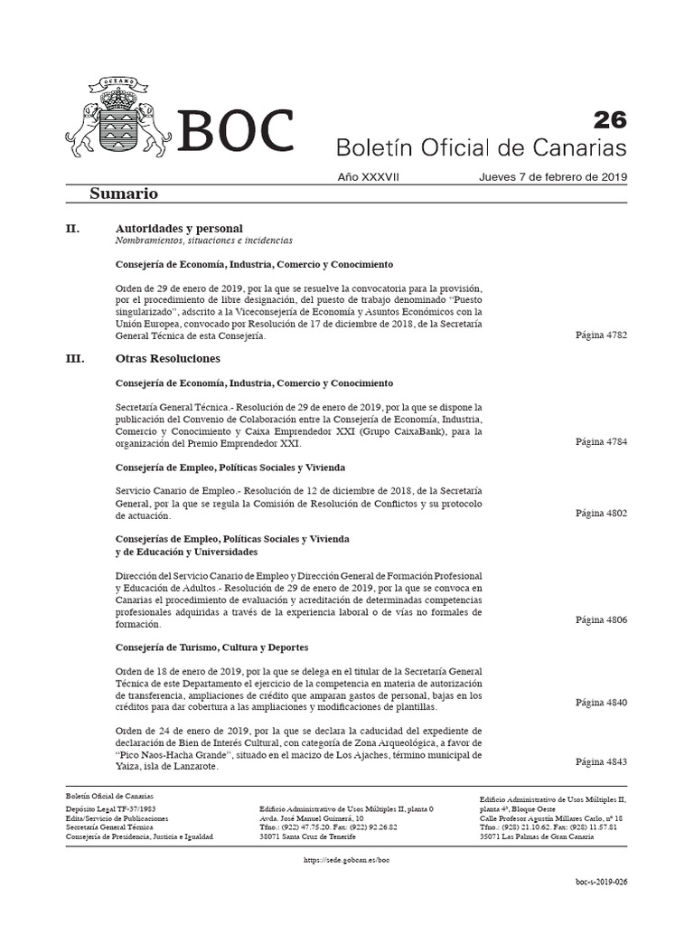 Boletín Oficial de Canarias núm. 26 4781 Jueves 7 de febrero de 2019