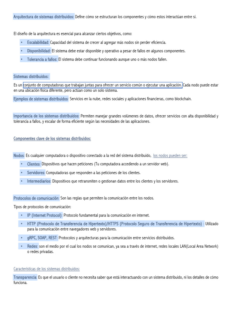 Importancia de los sistemas distribuidos: Permiten manejar grandes volúmenes de datos, ofrecer servicios con alta disponibilidad y