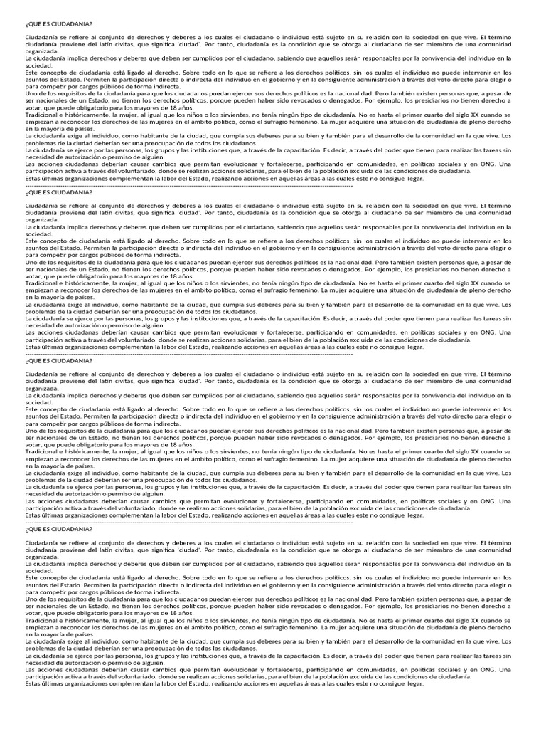 Ciudadanía se refiere al conjunto de derechos y deberes a los cuales el ciudadano o individuo está sujeto en su relación con la sociedad en que vive. El término