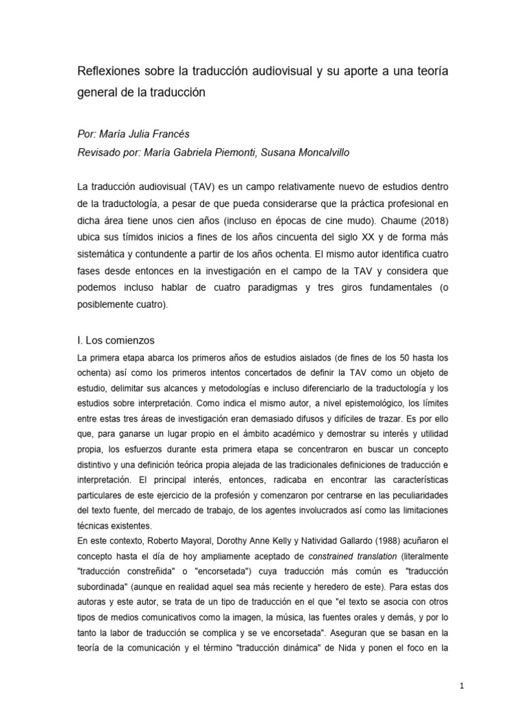 los tipos de subtítulos, entre otros). Otros son valiosos para los estudios de traducción en general