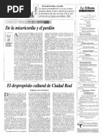 Segn la denicin de la UNESCO de 1972, la Biblioteca es el medio principal para dar a todos libre acceso al conjunto de los pensamientos y de las ideas de los hombres presentndolas de forma atractiva y puestas al da constantemente, sus colecciones deben de ser la prueba viva de la evolucin del saber y de la cultura, para ayudar a los lectores a formarse sus propias opiniones y a desarrollar su gusto, sus facultades criticas y creativas. La Biblioteca se dene como el sistema de acceso de todos los ciudadanos a la enseanza, la cultura y la informacin. Es el medio para introducir el libro y otros materiales, en el mbito cultural. Las Bibliotecas Pblicas son centros vivos de difusin cultural, que no solo se fundamentan en la necesidad de custodiar el patrimonio cultural de la localidad, sino que la expansin de las tecnologas de la informacin y la comunicacin, y la promocin del libro y la lectura, la hacen estar al da innovando y adaptando sus instalaciones para la mejor difusin de sus fondos. La Biblioteca Municipal de Brihuega ha incorporado en 2008 material multimedia a sus fondos, completando el servicio de prstamo de libros y otros materiales especiales fuera de la Biblioteca. A partir de enero de 2009 los lectores tendrn al prstamo materiales audiovisuales: - Audiovisuales de materia. - Videos y DVD. - Cds Msica. - Cd- Rom. Cada persona podr llevarse en prstamo 2 materiales por un periodo de una semana, devolvindolos en las mismas condiciones que se recibieron. Esperamos que la incorporacin de materiales multimedia tenga buena aceptacin entre los lectores de la Biblioteca Municipal. 33