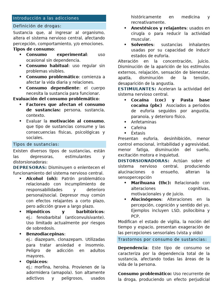 adictivos y peligrosos, usados la droga, produciendo un efecto perjudicial