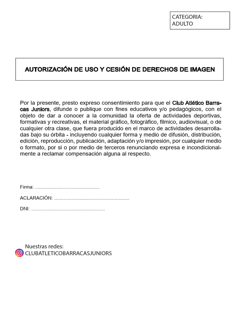 Por la presente, presto expreso consentimiento para que el Club Atlético Barra-
