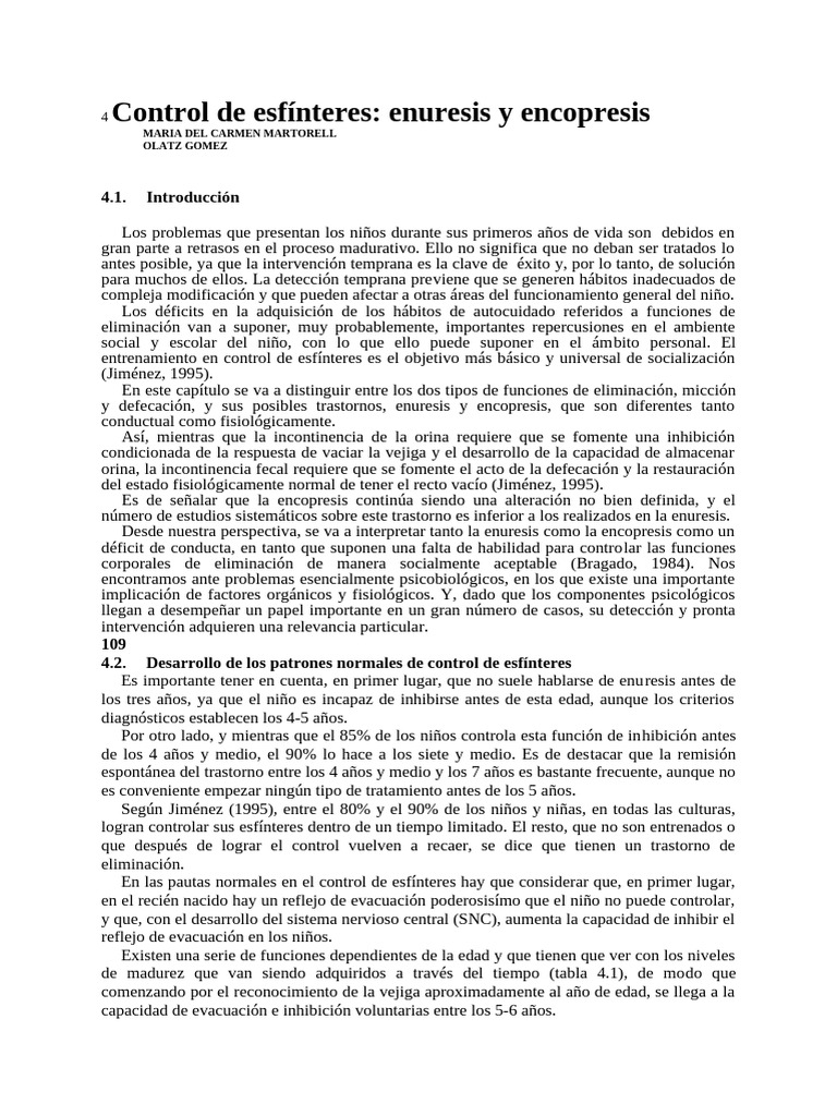 4.3. Descripción fenomenológica de los diversos trastornos (enuresis y encopresis)