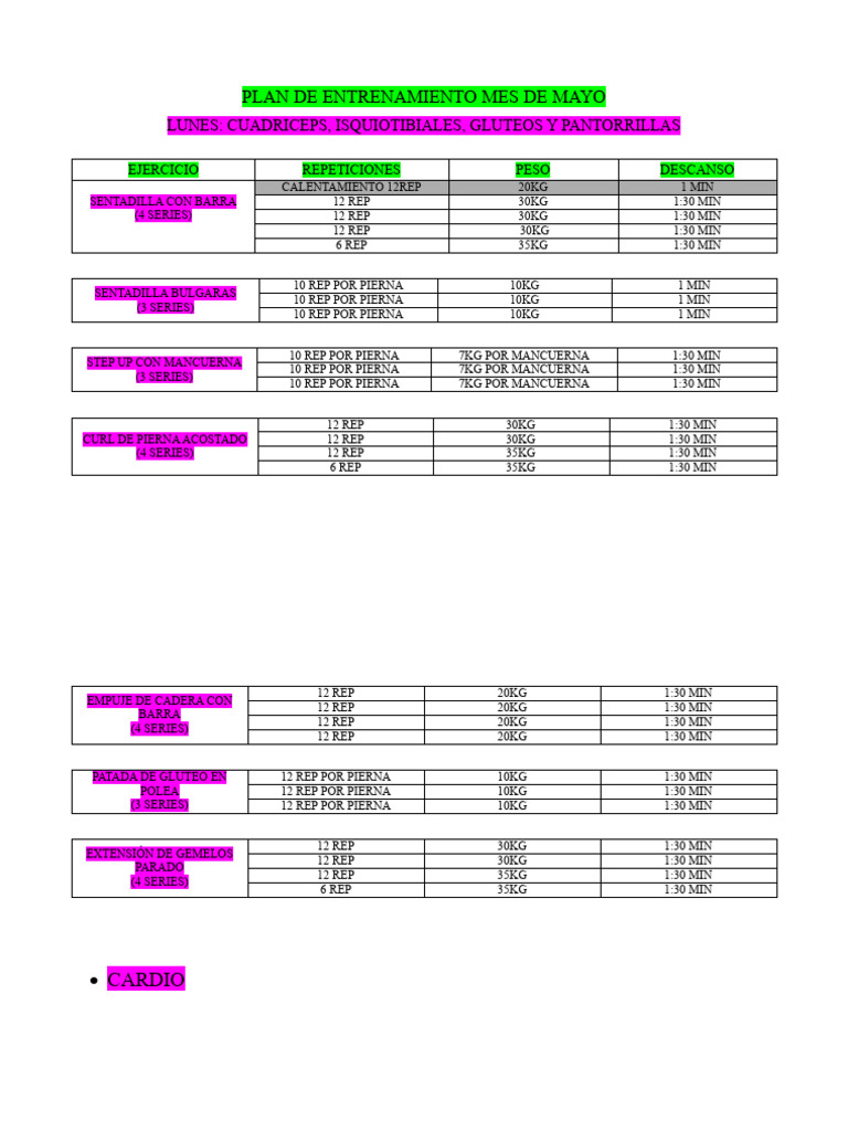 PLAN DE ENTRENAMIENTO MES DE MAYO