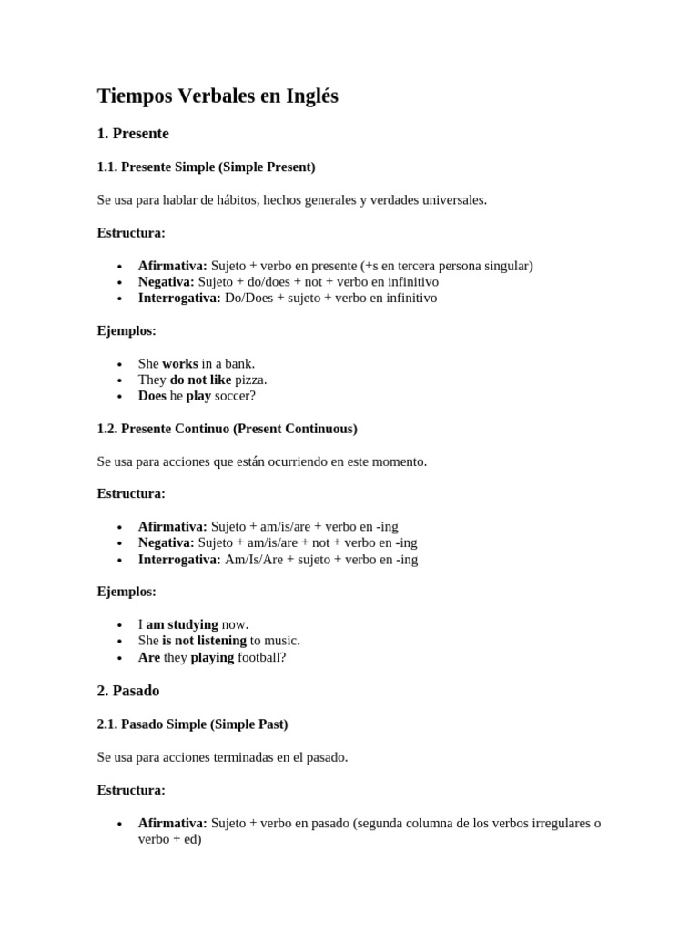 Tiempos Verbales en Inglés