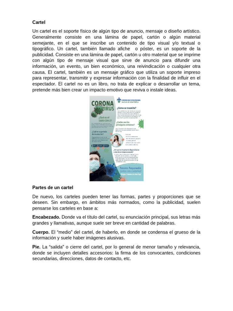 Ejemplo: Un afiche suele presentar las siguientes características: El texto está