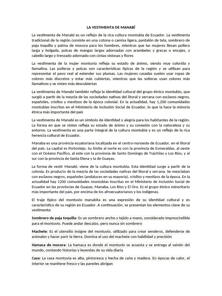 entorno. La vestimenta es una parte integral de la cultura montubia y es un reflejo de la rica