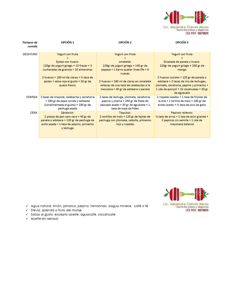 COMIDA 2 tazas de chayote, calabacita y zanahoria 2 tazas de lechuga, jitomate, zanahoria, 2 nopales asados + 1 taza de frijoles de
