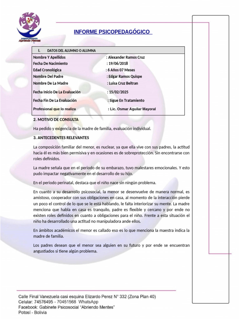 INFORME PSICOPEDAGÓGICO
