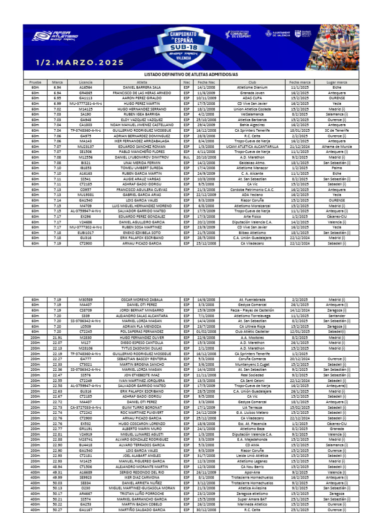 60m 7.17 V24686 DANIEL AGULLEIRO GARCIA ESP 20/2/2008 Diputación Valencia C.A. 14/2/2025 Valencia (i)