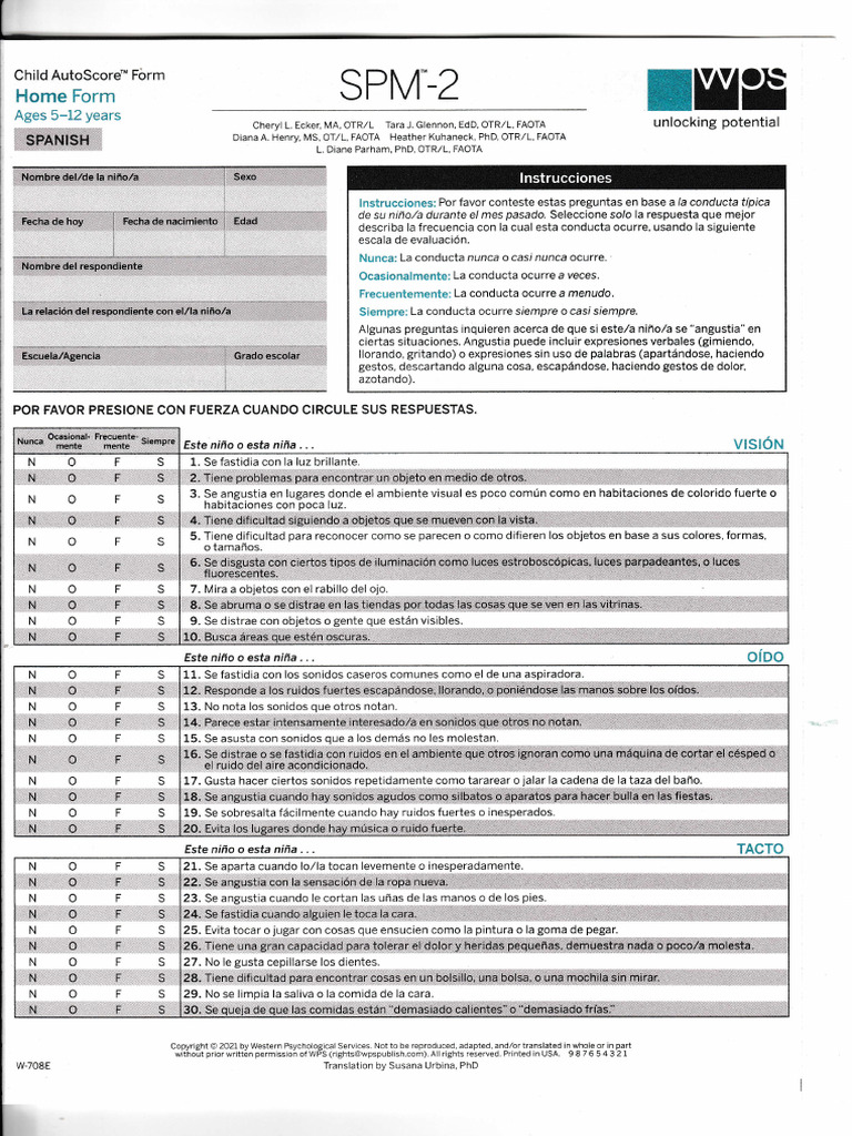 Ages 5-12 years Sensory Processing Measure, Second Edltion unlocking potential