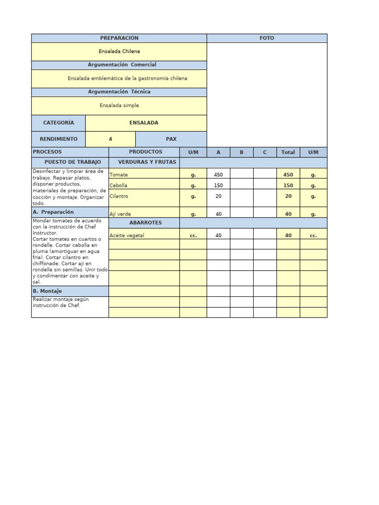 cocción y montaje. Organizar Cilantro g. 20 20 g.